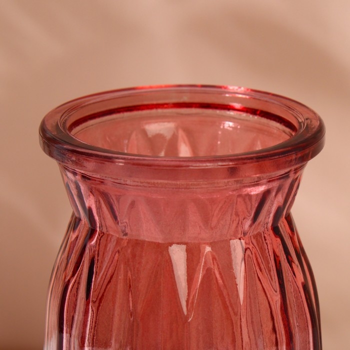 Изготовленная из прозрачного стекла, ваза имеет стильный дизайн в розовом цвете.