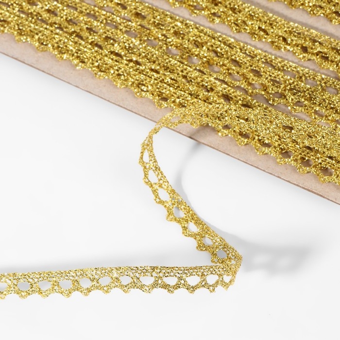 Тесьма декоративная, металлизированная, 10 ± 1 м, 8 мм, цвет золотой