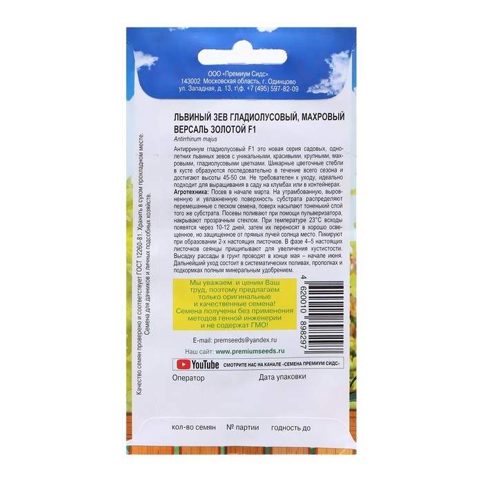 Семена цветов Львиный зев гладиолусовый махровый "Версаль Золотой", F1, 5 шт