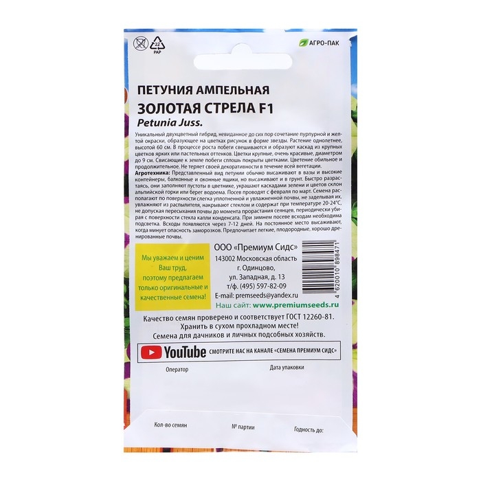 Семена цветов Петуния ампельная "Золотая стрела F1", 10 шт
