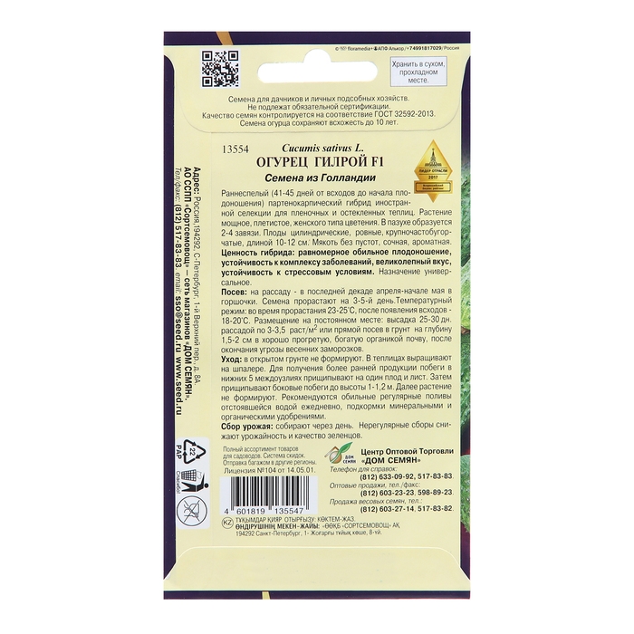 Семена Огурец "Гилрой F1", 6 шт