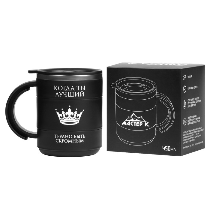 Термокружка "Мастер К" Поход "Когда ты лучший", 450 мл, сохраняет тепло 2 ч, черная