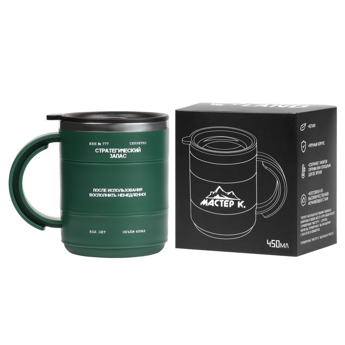 Термокружка "Мастер К" Поход "Стратегический запас", 450 мл, с ручкой, сохраняет тепло 2 ч