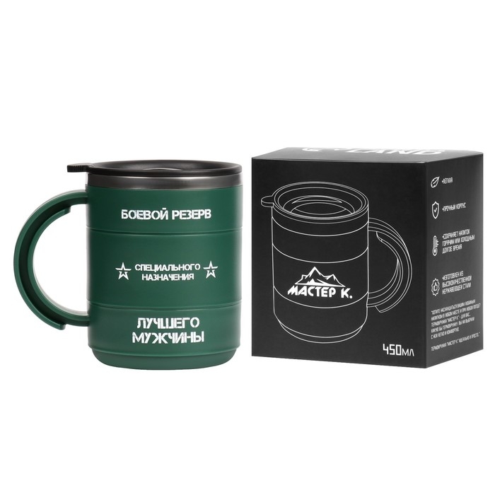 Термокружка "Мастер К" Поход "Боевой резерв", 450 мл, сохраняет тепло 2 ч, зеленая