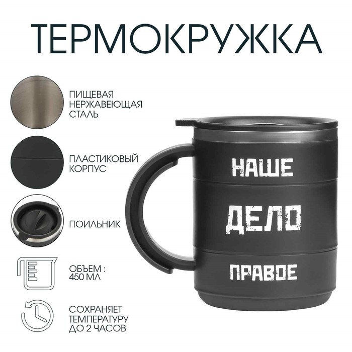 Термокружка "Мастер К" Поход "Наше дело правое", 450 мл, сохраняет тепло 2 ч, 12.5 х 10.5 см