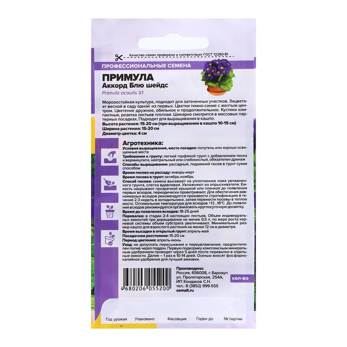 Семена Примула "Аккорд Блю шейдс", ц/п, 5 шт
