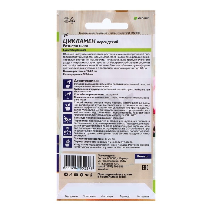 Семена Цикламен "Розмари мини", ц/п, 3 шт.