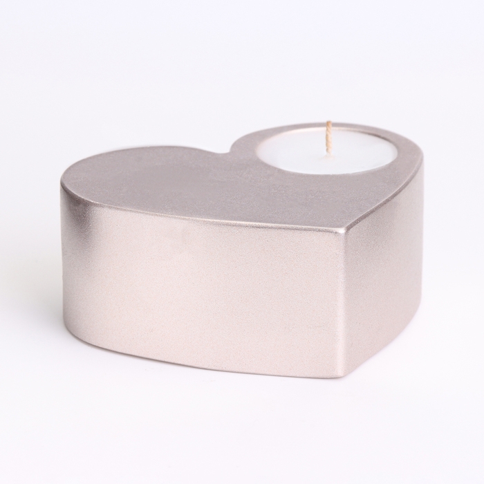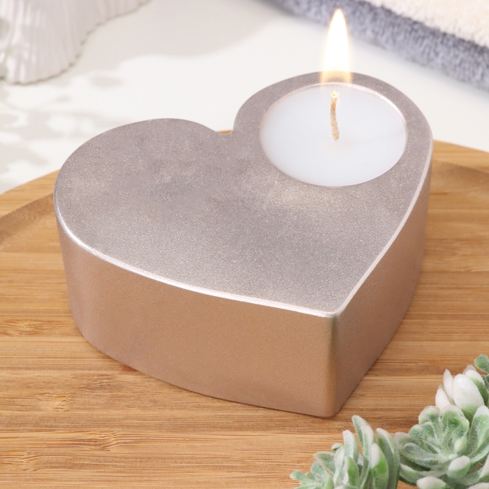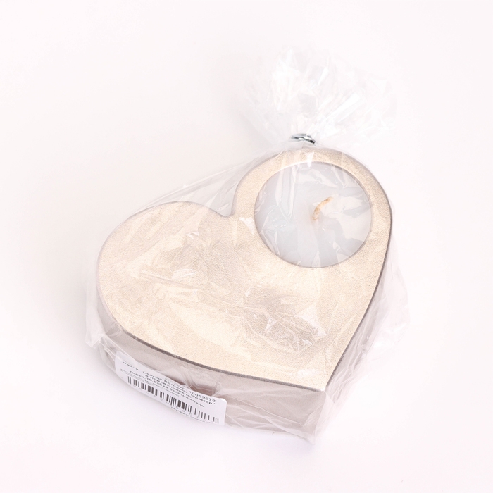 Свеча "Сердце большое. Мрамор" в подсвечнике из гипса,10,5х9х4,5см,шампань