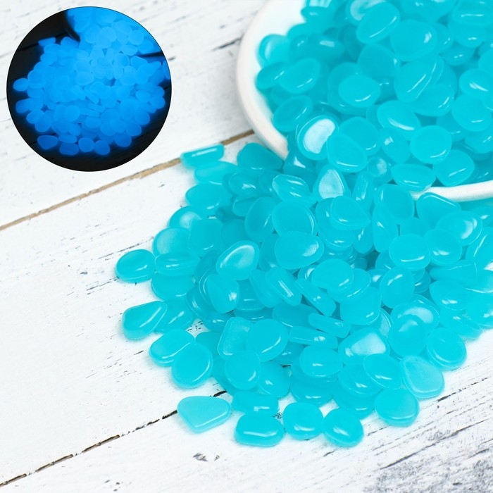 Декоративные камни для аквариума, светящиеся, 8-11 мм, 200 г, голубые