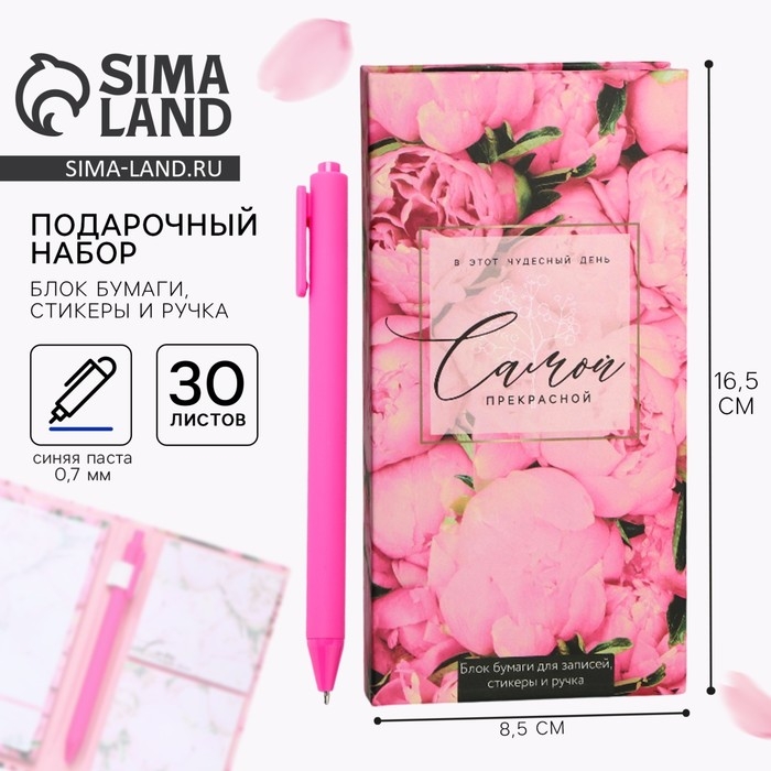 Блок бумаг для записей, стикеры, ручка «Самой прекрасной»