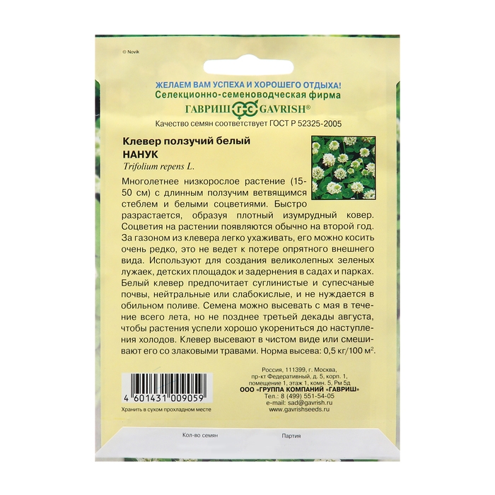 Семена Клевер "Нанук", ц/п, белый, 20 г