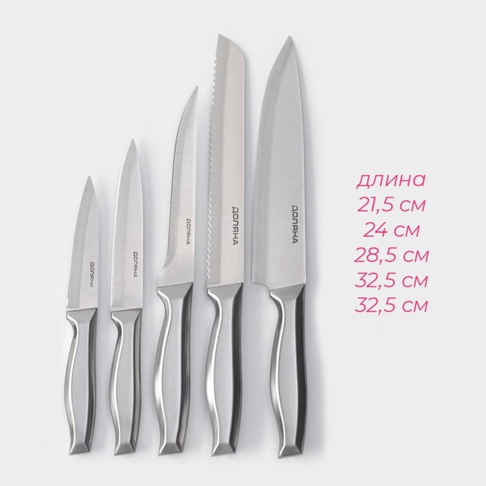 Набор ножей кухонных на подставке Доляна «Металлик», 7 предметов: 5 ножей, мусат и ножницы, цвет серебристый