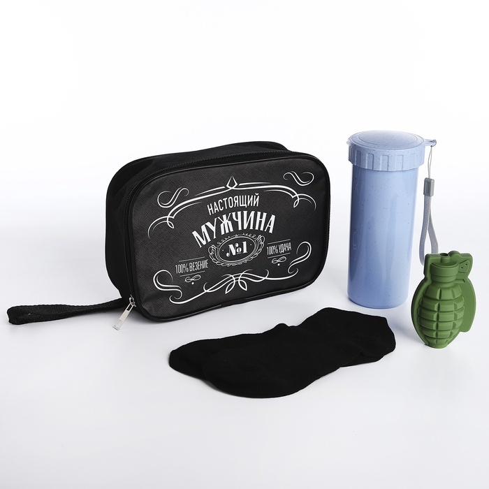 Подарочный набор «Настоящий мужчина»: сумка, стакан, носки р-р 40-42, форма для льда