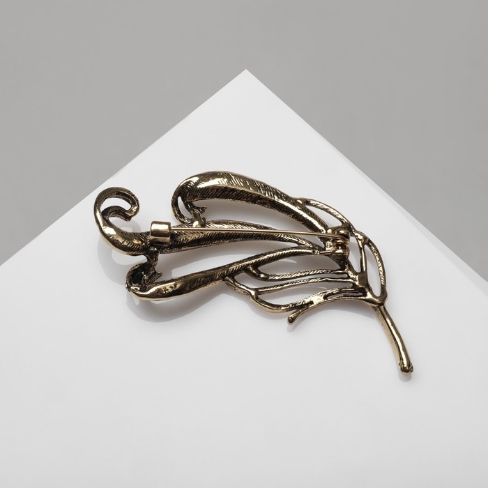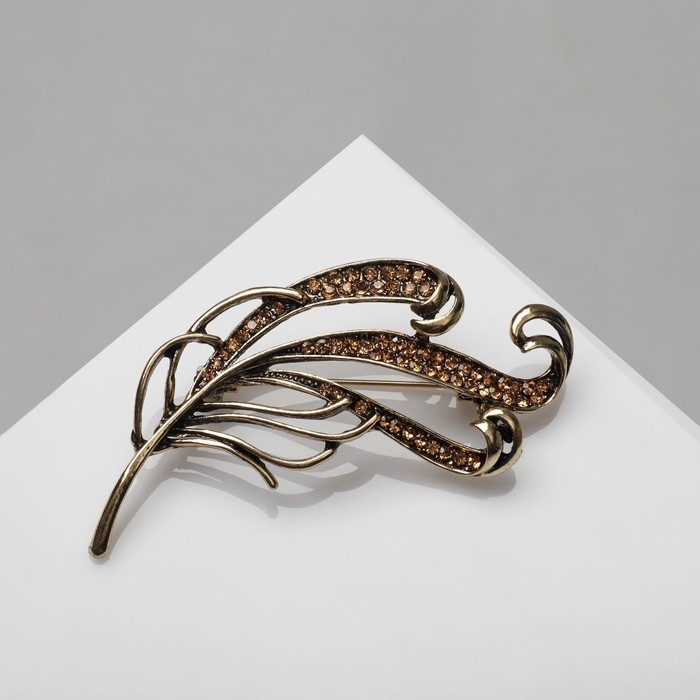 Брошь «Перо», цвет светло-коричневый в чернёном золоте