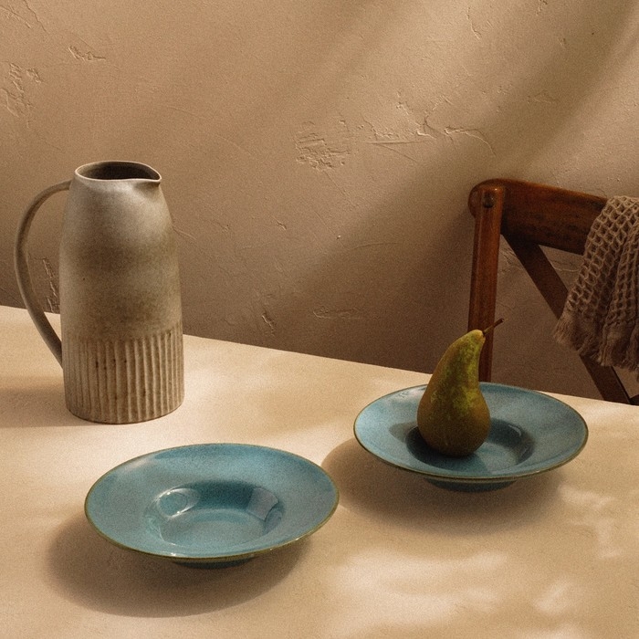 - Изящный дизайн: бирюзовый цвет с утонченными полосками на поверхности придает тарелкам стильный и современный вид, который украсит любой стол.