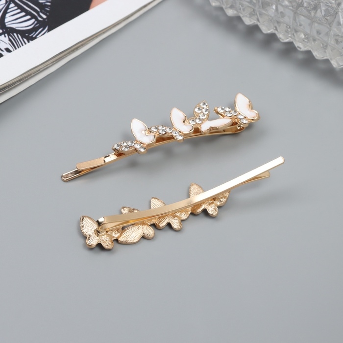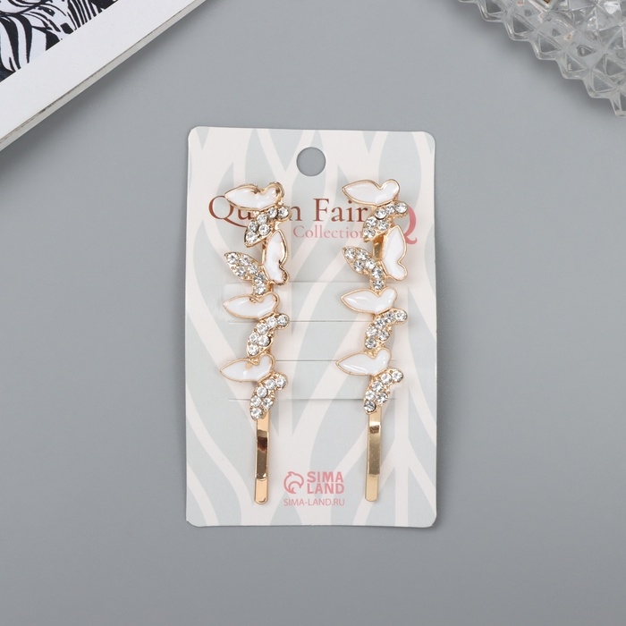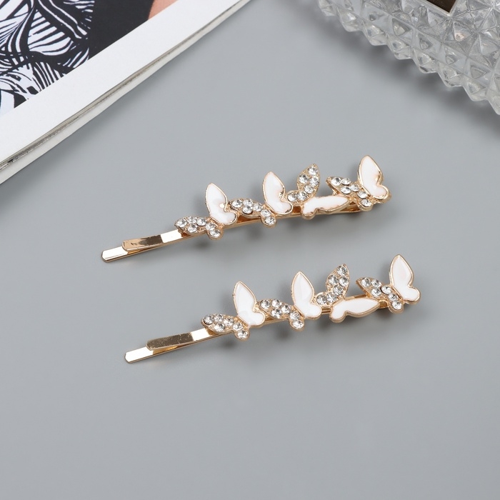 Невидимка для волос "Аннабелль" (набор 2 шт) бабочка белый, 6,5 см