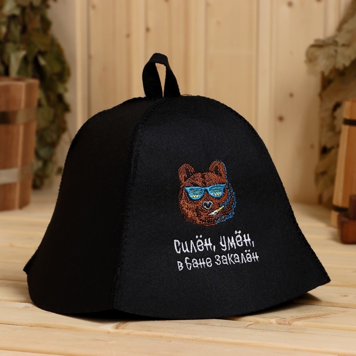 Шапка банная "Силён, умён, в бане закалён", экофетр
