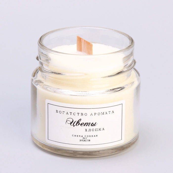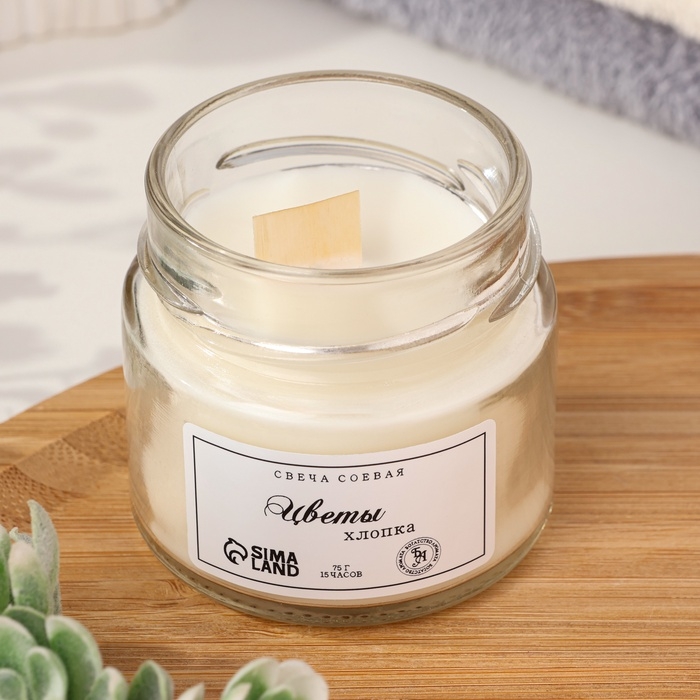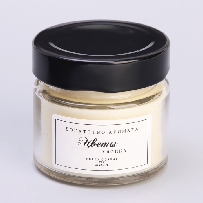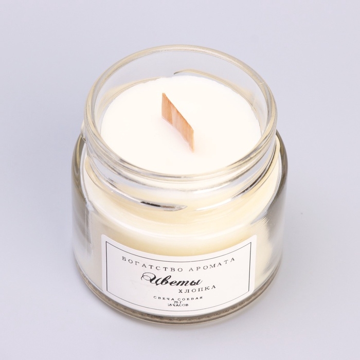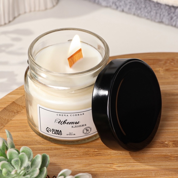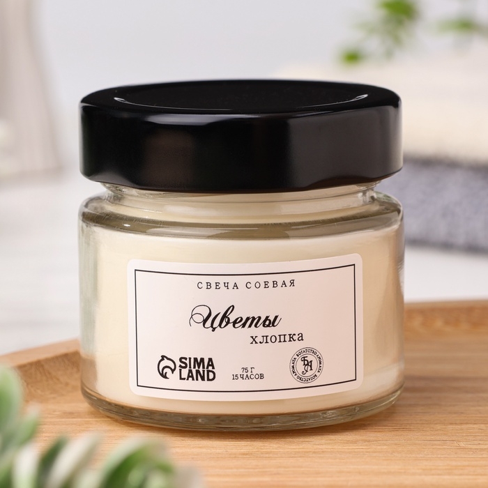 Свеча ароматическая из соевого воска в банке, 75 г, цветы хлопка