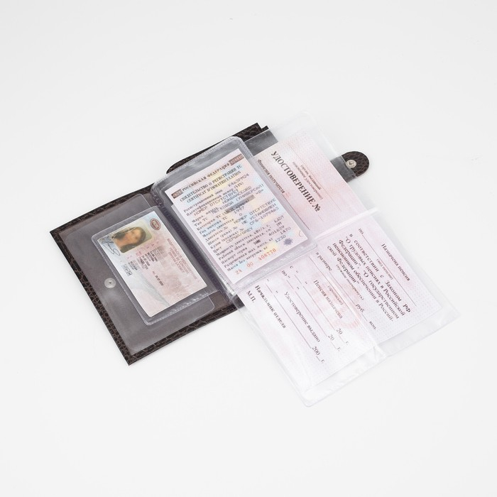 Обложка для автодокументов и паспорта, отдел для купюр, 5 карманов для карт, TEXTURA, цвет коричневый