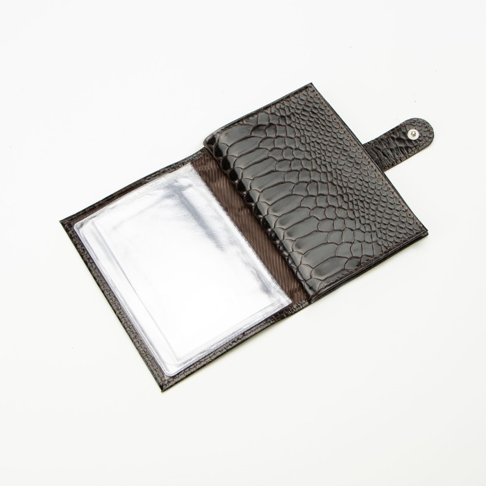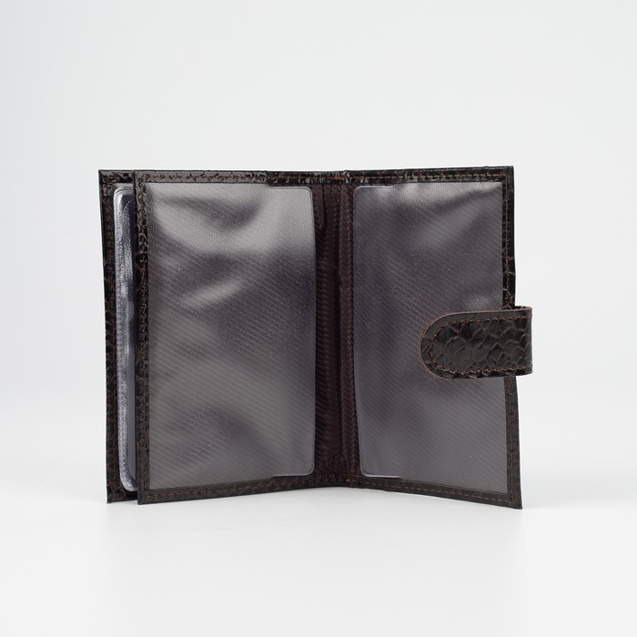 Откройте для себя элегантный аксессуар, который гармонично сочетает стиль и функциональность — коричневая обложка для автодокументов и паспорта от TEXTURA. Этот аксессуар выполнен из натуральной кожи с фактурой питона, что придает ему особый шарм и изысканность.