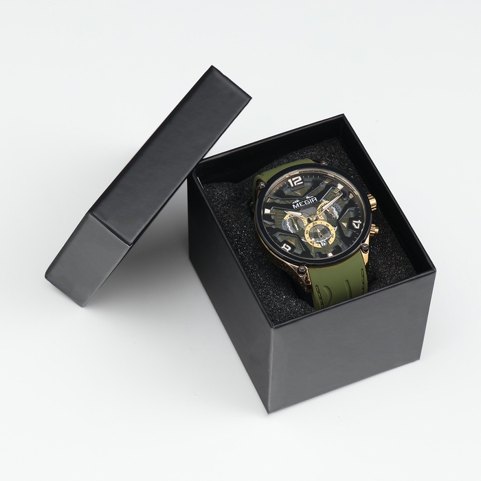 Часы наручные кварцевые мужские, d-4.6 см, с хронографом, 3 АТМ, светящиеся, зеленые