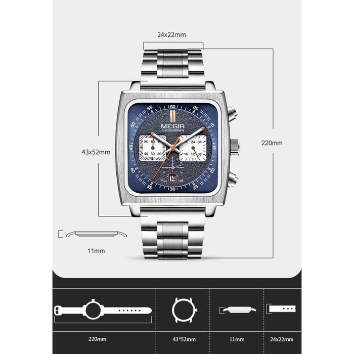 Часы наручные кварцевые мужские, d-4.35 см, с хронографом, 3 АТМ, светящиеся