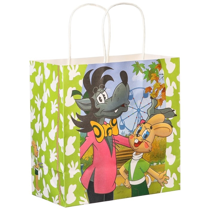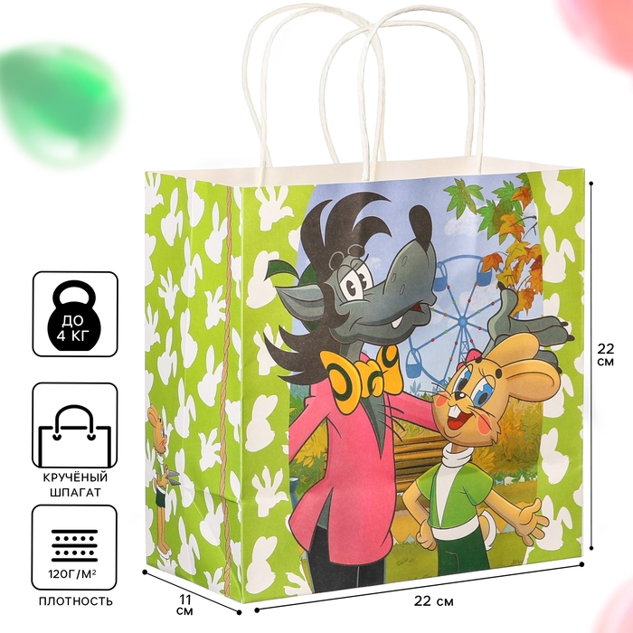Пакет подарочный, 22х22х11 см, крафт, упаковка, Ну, погоди