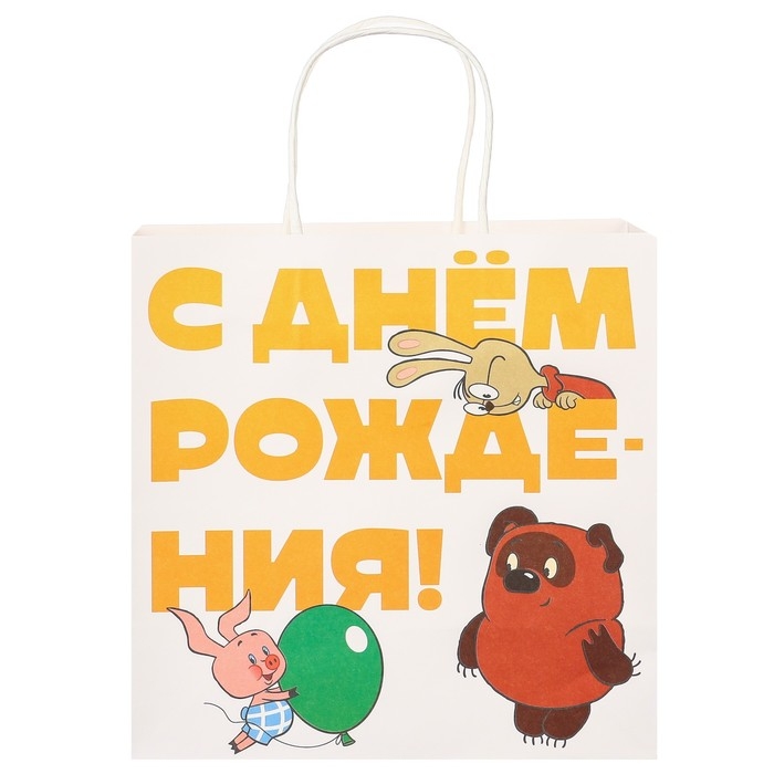 Пакет крафтовый, подарочный, «С Днём рождения!», 22 х 22 х 11 см, Винни-Пух