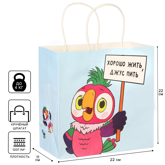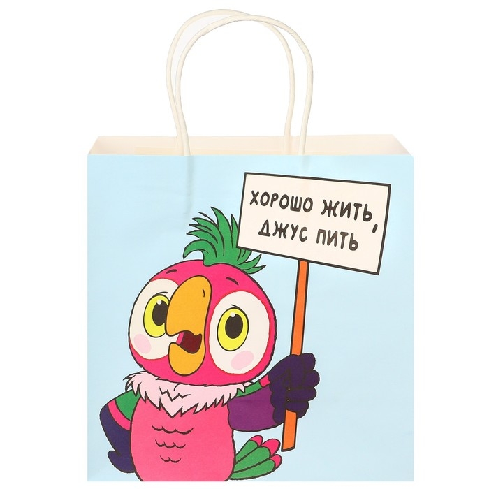 Пакет подарочный, 22х22х11 см, крафт, упаковка, Попугай Кеша