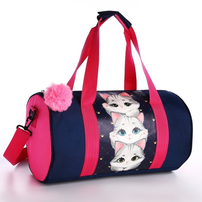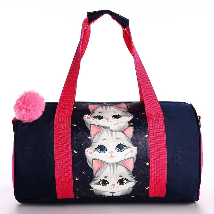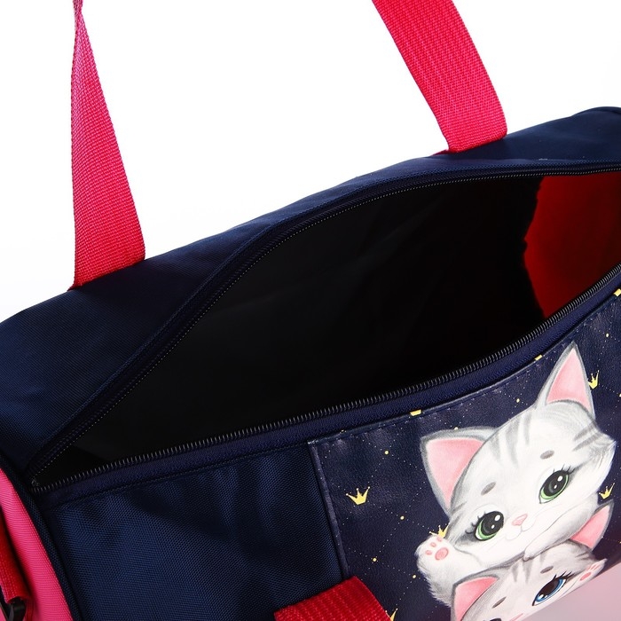Сумка детская спортивная "Котята", 40*20*20 см, 40*20 х см, темно синий цвет, отдел на молнии, цвет красный