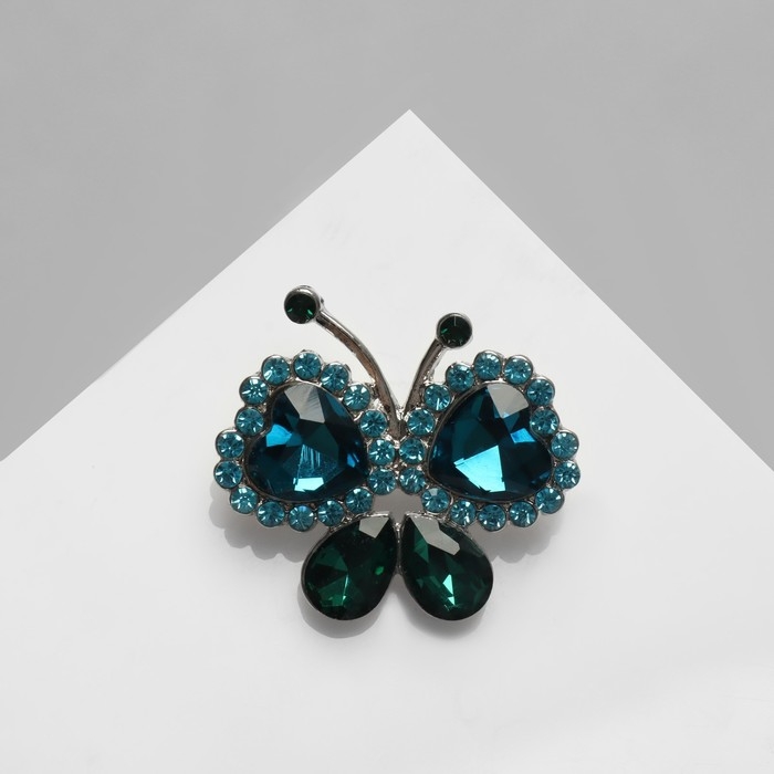 Брошь «Бабочка» малыш, цвет сине-зелёный в серебре