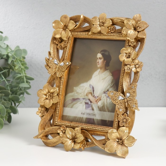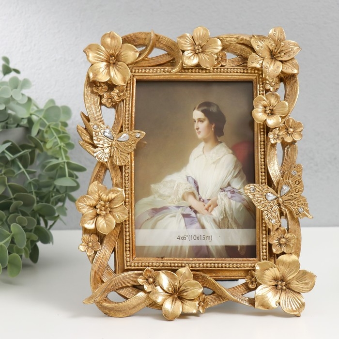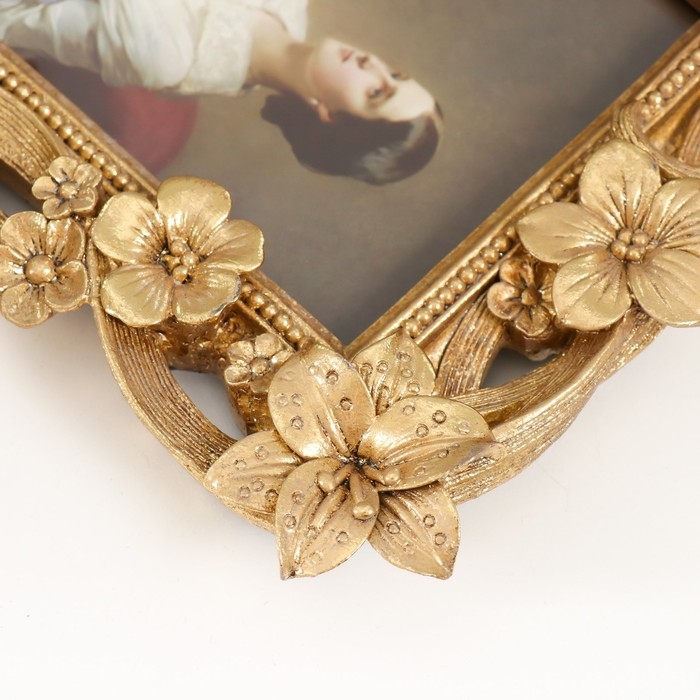 Фоторамка полистоун 10х15 см "Цветочная нежность" золото 23х18х2 см