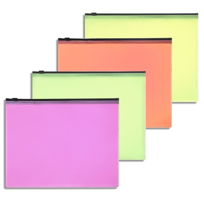 Набор папок-конверт на ZIP-молнии А4, 150 мкм, Calligrata Neon, c черной молнией, неон, 4 штуки, микс