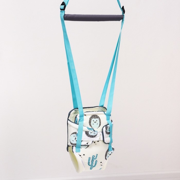 Посадите полугодовалого кроху в сиденье-штанишки. Малышу понравится активная игра, он будет подпрыгивать и качаться. Размер посадочного места можно настроить индивидуально, а за перекладину ребёнку будет удобно держаться.