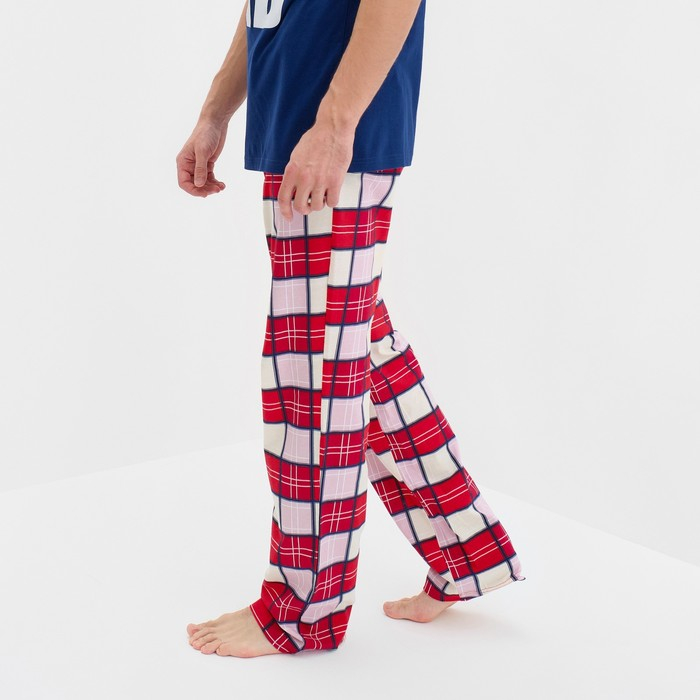 Пижама новогодняя мужская KAFTAN "Santa team", цвет синий/красный, размер 56