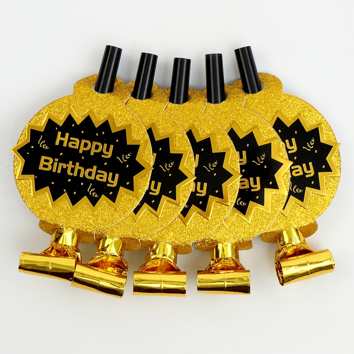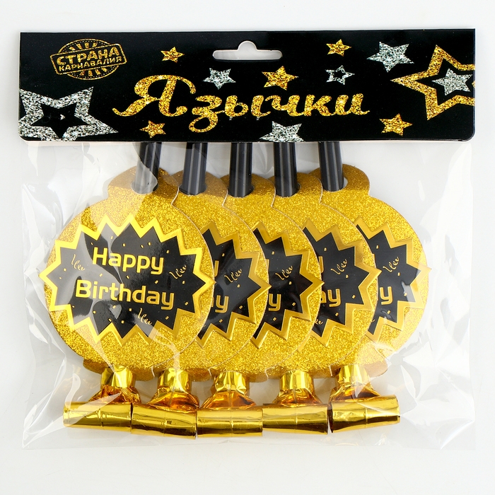 Карнавальный язычок «С днём рождения», набор 5 шт., цвет золотой
