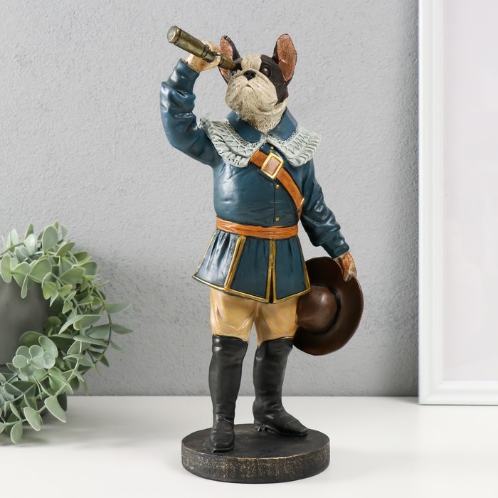 Сувенир полистоун "Английский шарж-Бульдог с подзорной трубой" 17х11,5х31,5 см