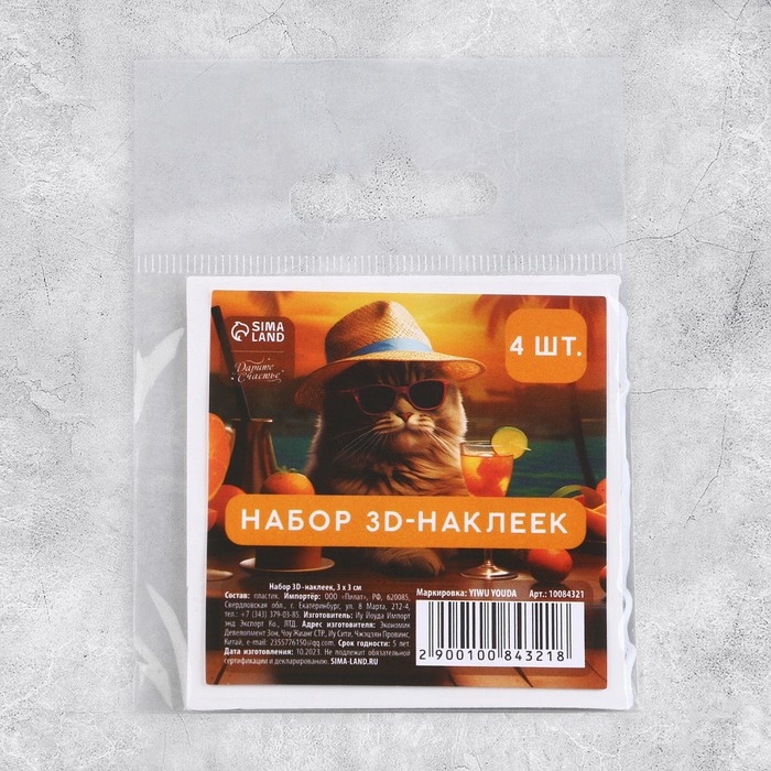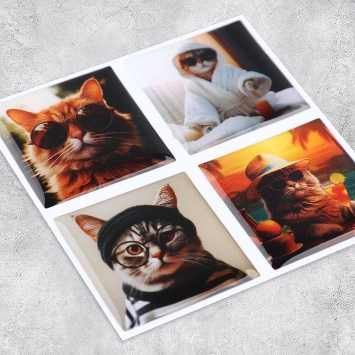 Объёмные 3D стикеры на телефон «Котики», 4 шт, 3 х 3 см