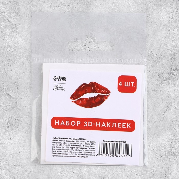 Объёмные 3D стикеры на телефон «Любовь», 4 шт, 3 х 3 см