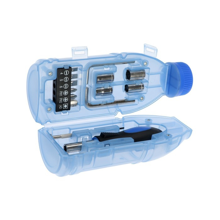 Набор инструментов ТУНДРА, подарочный пластиковый кейс "Бутылка", 15 предметов