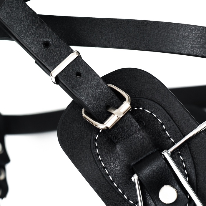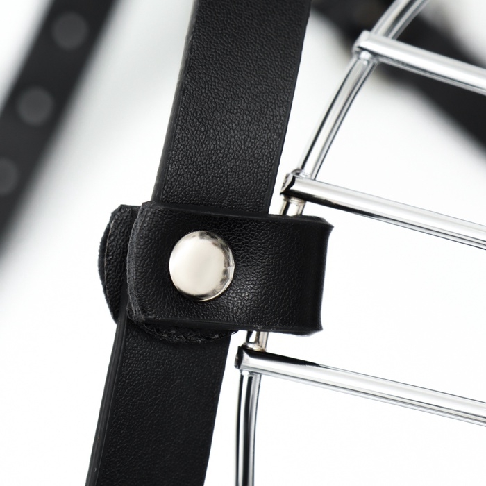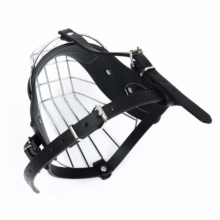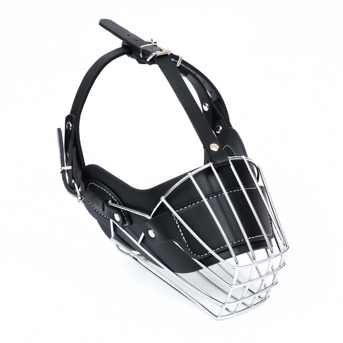 Намордник металлический №3 с трехсторонним ремешком, прессованная кожа, чёрный