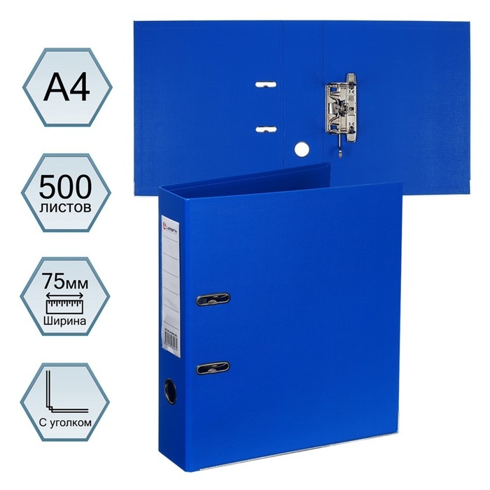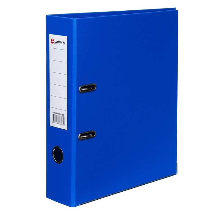 Папка-регистратор А4, 75 мм, Lamark, ПВХ, двухстороннее покрытие, металлическая окантовка, карман на корешок, собранная, синий/синий