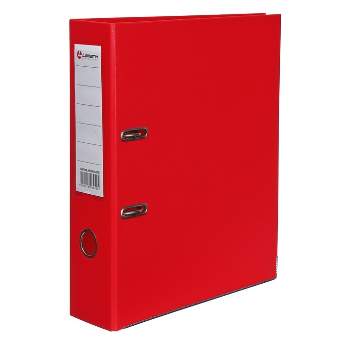 Папка-регистратор А4, 75 мм, Lamark, ПВХ, двухстороннее покрытие, металлическая окантовка, карман на корешок, собранная, красный/красный