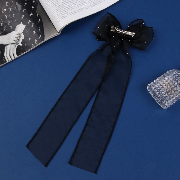 Зажим для волос "Школьница" бантик точка, 12х30 см, чёрный