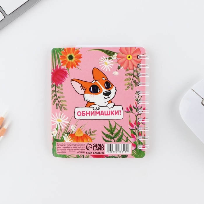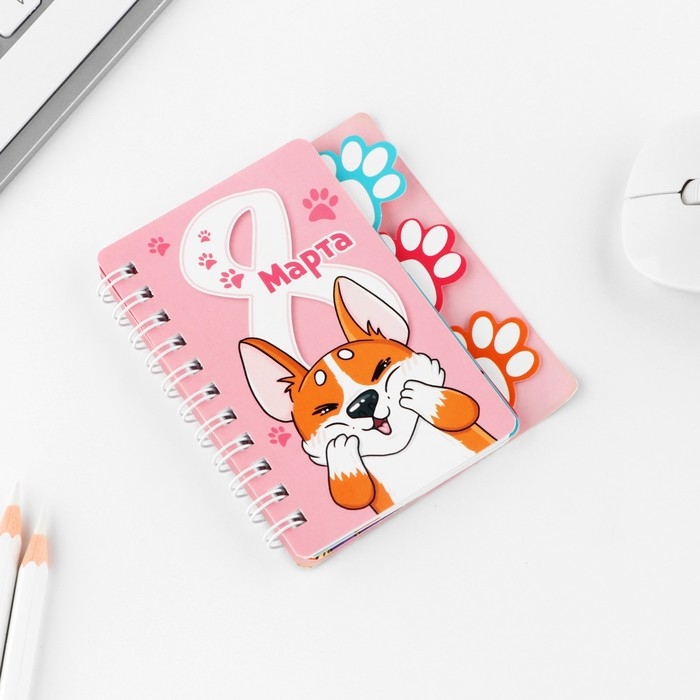 Блокнотик с разделителем А7, 40 л "8 Марта, корги"