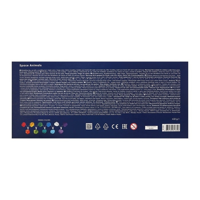 Пластилин 24 цвета, 432 г, ErichKrause "Kids Space Animals", со стеком, в картонной упаковке