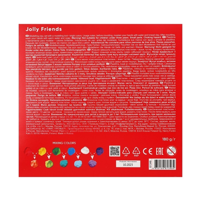 Пластилин 10 цветов, 180 г, ErichKrause "Jolly Friends", со стеком, в картонной упаковке