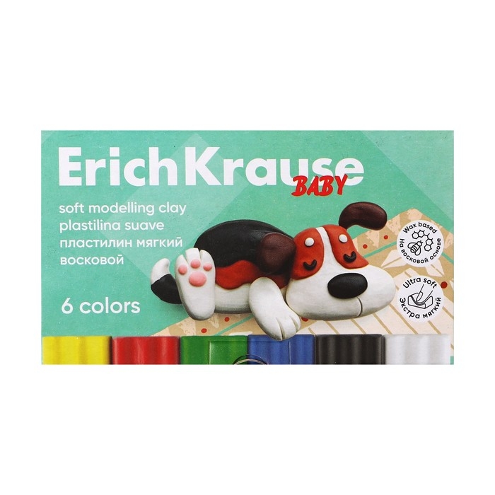 Пластилин мягкий 6 цветов, 90 г, ErichKrause "Baby", на растительно основе, с Алоэ Вера , европодвес