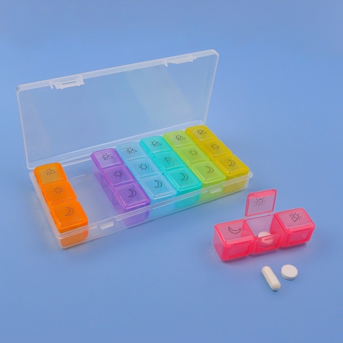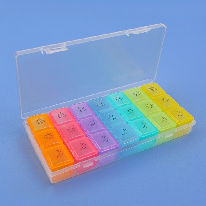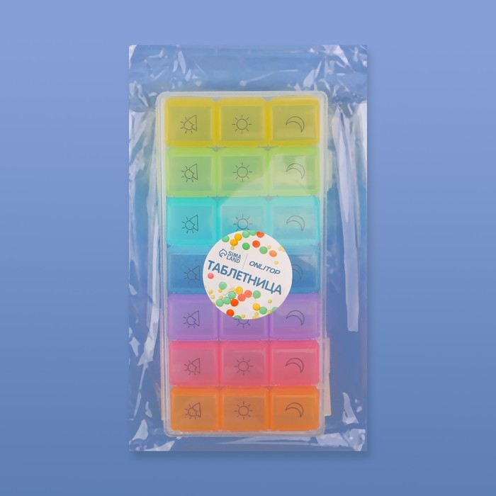Таблетница - органайзер «Неделька», утро/день/вечер, 21,5 × 9 × 2 см, 21 секция, в коробке, разноцветная