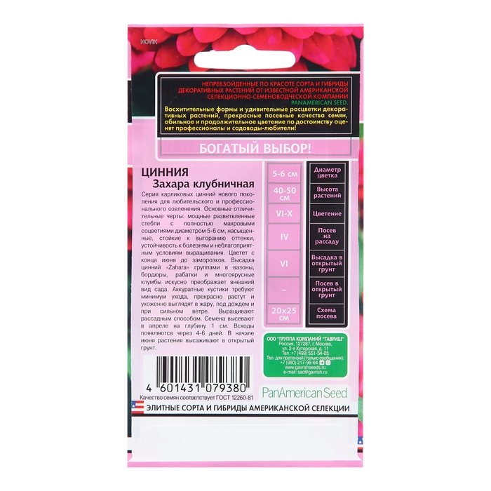 Семена Цинния "Захара", ц/п, клубничная, 5 шт.